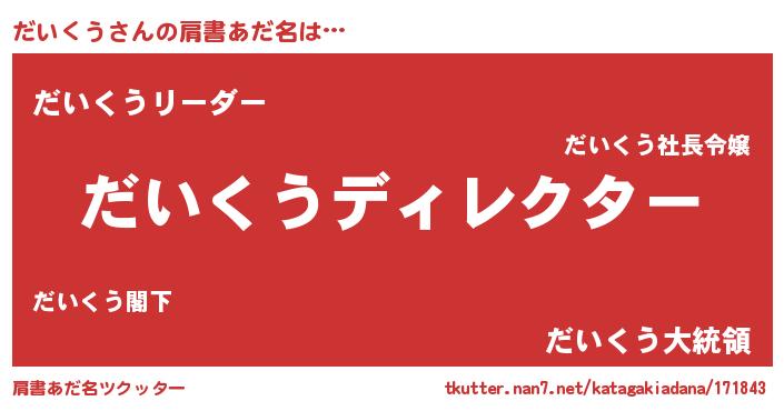 | 欧米人風あだ名 | 『アンジェラ・だいくう』 |