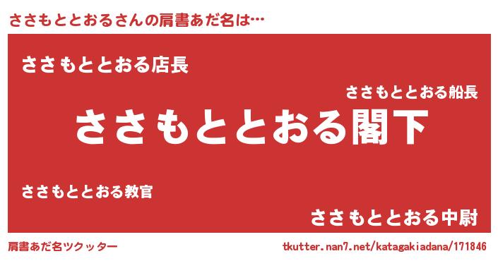 | 意味不明あだ名 | 『自称ささもととおる』 |