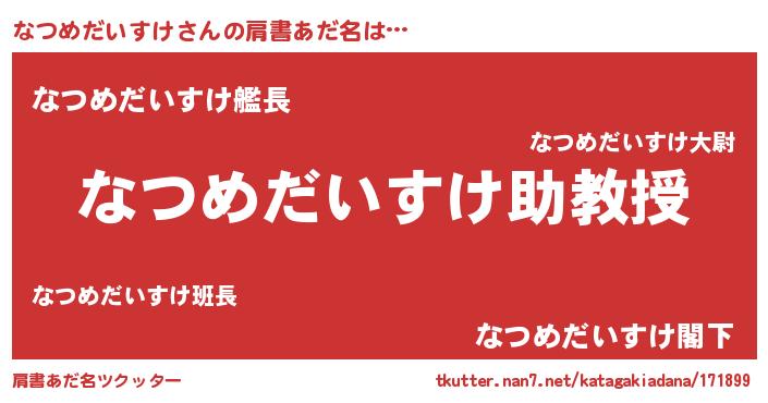 | 男性向けラノベタイトル風あだ名 | 『ノーゲーム・ノーナツメダイスケ』 |