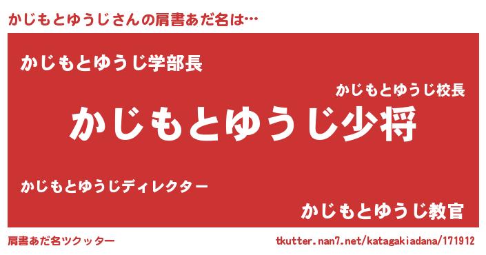 男性向けラノベタイトル風あだ名 | 『かじもとゆうじ~年齢イコール彼女いない歴の魔法使い~』 |