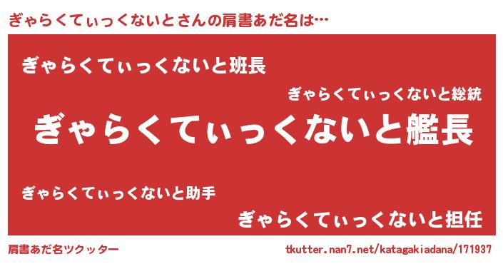 | 欧米人風あだ名 | 『ぎゃらくてぃっくないと・ステッグマイヤー』 |