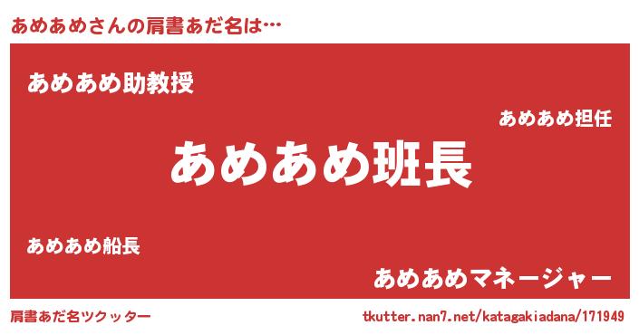 | 胡散臭い通販商品みたいなあだ名 | 『信頼と実績のネックレス…その名も「あめあめ」』 |