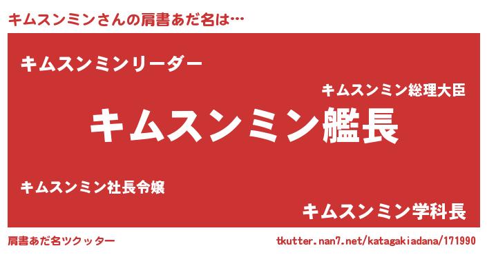 | 市区町村名 | 『キム田谷区』『キム阪市』 |