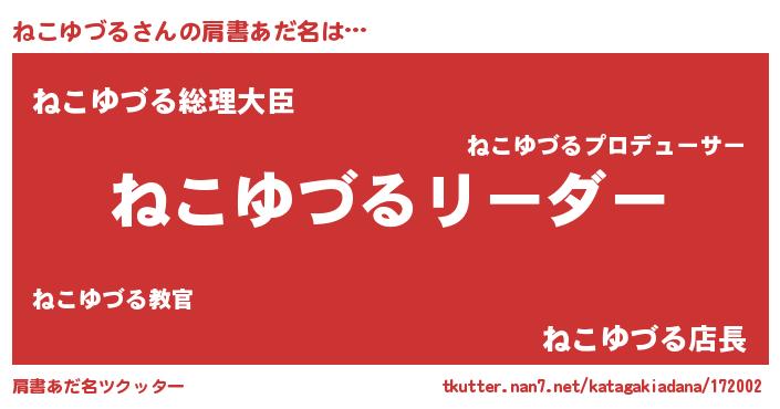 | ポケモン風あだ名 | 『ヒネコユヅル』『ネコユダネ』 |