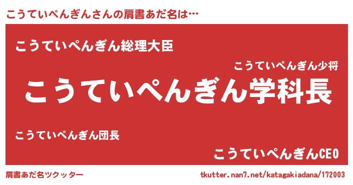 | 女子向けラノベタイトル風あだ名 | 『死神こうていぺんぎんの再婚』 |