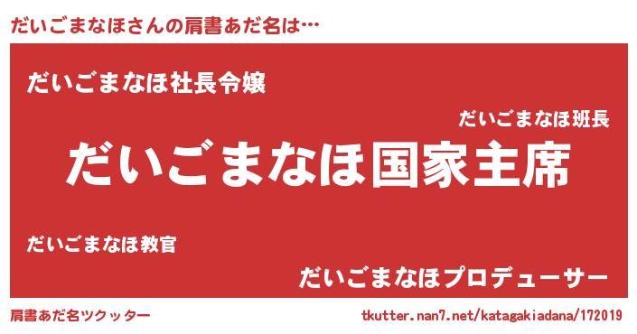 | 欧米人風あだ名 | 『だいごまなほクリステル』 |