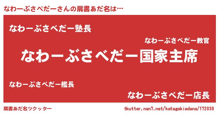 | 欧米人風あだ名 | 『なわーぶさべだークリステル』 |