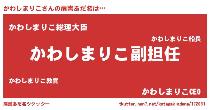 | ヒーロー風カッコイイあだ名 | 『ネオカワシマリコ』『仮面カワダー』 |