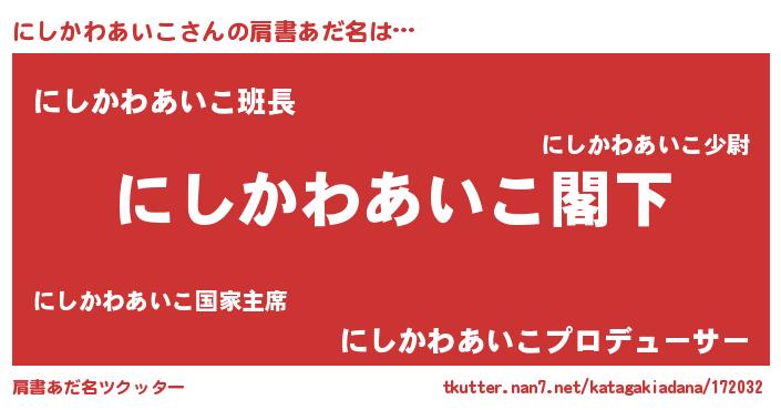 | ポケモン風あだ名 | 『ニシセウス』『ヒニシカワアイコ』 |
