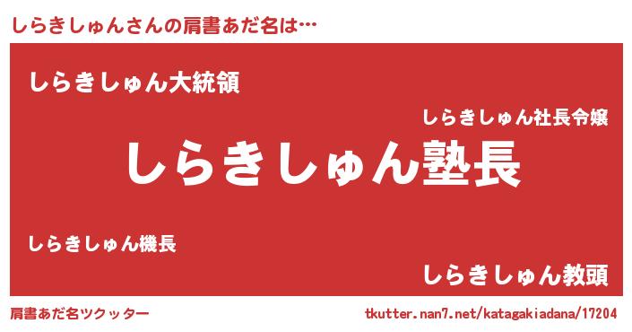 | 男性向けラノベタイトル風あだ名 | 『しらきしゅんの嫁は女の子じゃないと思った?』 |