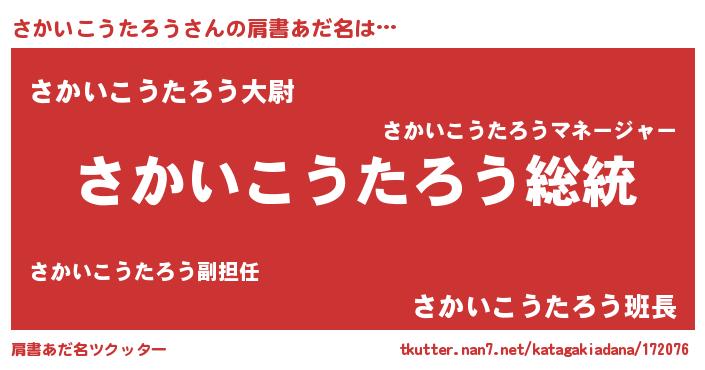| 男性向けラノベタイトル風あだ名 | 『Re:さかいこうたろうから始める異世界生活』 |