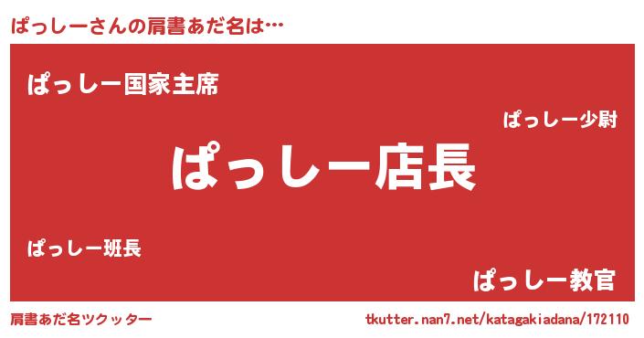 | 欧米人風あだ名 | 『マイケルぱっしー』『ウサインぱっしー』 |