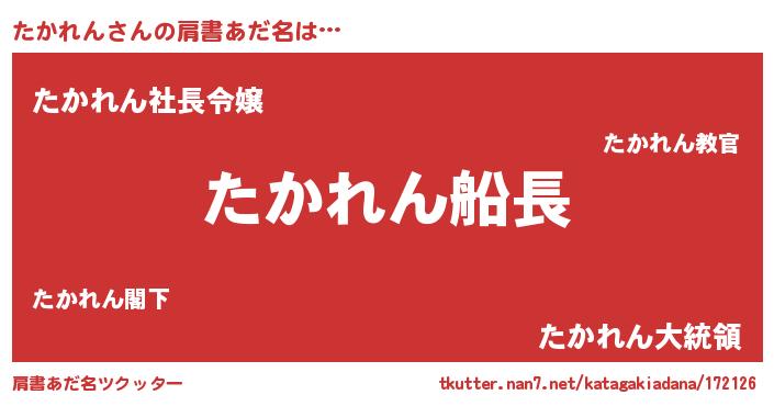 | 意味不明あだ名 | 『ペロリンたかれん』『自称たかれん』 |