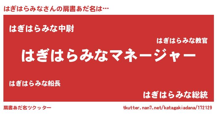 | 胡散臭い通販商品みたいなあだ名 | 『テレビで話題の高麗人参…その名も「はぎはらみな」』 |