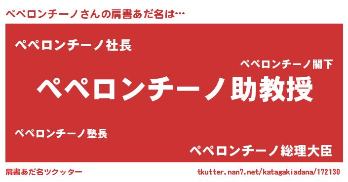 | 男性向けラノベタイトル風あだ名 | 『ノーゲーム・ノーペペロンチーノ』 |