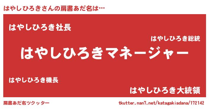 | 男性向けラノベタイトル風あだ名 | 『はやしひろきに滅ぼされるだけの簡単なお仕事です』 |