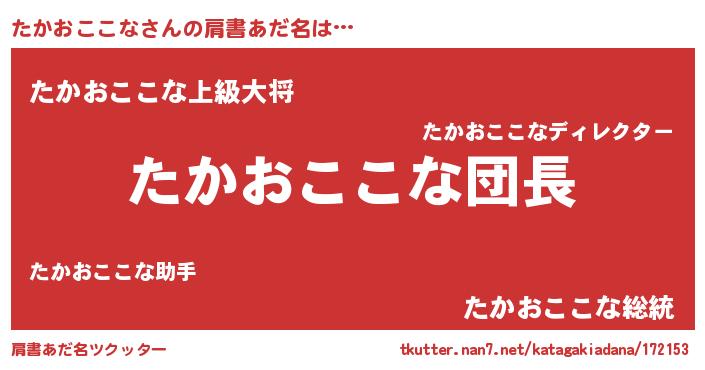 | ポケモン風あだ名 | 『ヒタカオココナ』『タカキング』 |