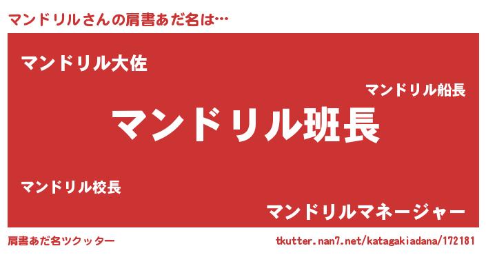 | 意味不明あだ名 | 『とにかく怪しいマンドリル』 |
