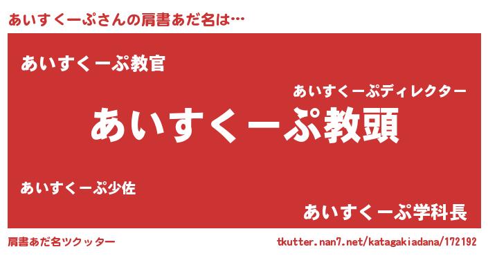 | 意味不明あだ名 | 『永久保存あいすくーぷ』 |