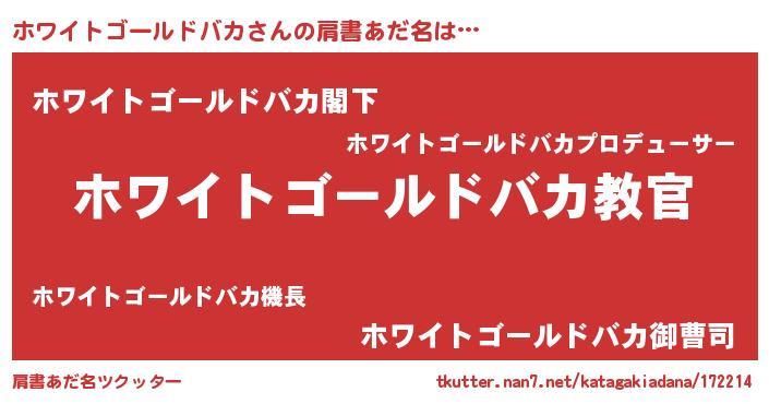 | 男性向けラノベタイトル風あだ名 | 『この素晴らしい世界にホワイトゴールドバカを!』 |