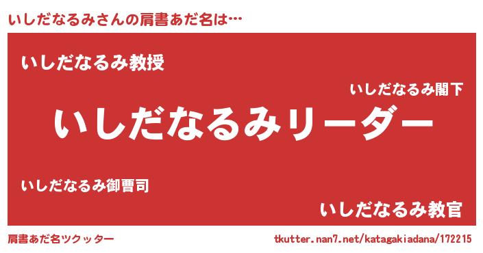 | 男性向けラノベタイトル風あだ名 | 『いしだなるみの嫁は女の子じゃないと思った?』 |