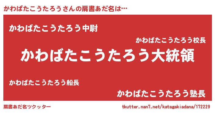 | 意味不明あだ名 | 『かわばたこうたろうフォーエバー』 |