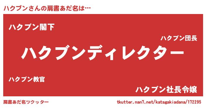 | 意味不明あだ名 | 『自称ハクブン』『ペロリンハクブン』 |