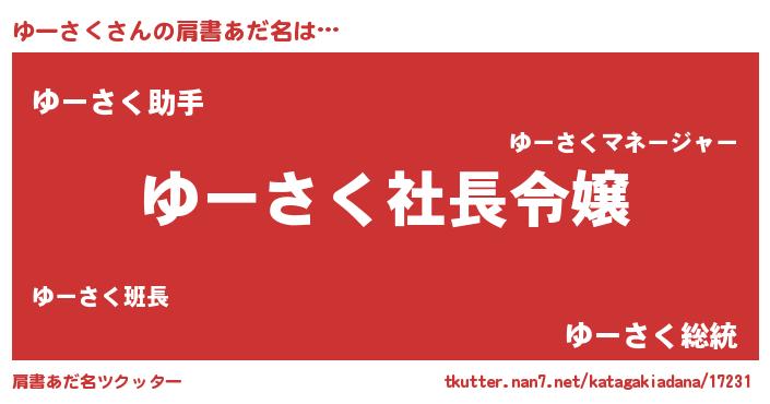 | 胡散臭い通販商品みたいなあだ名 | 『億万長者になれる霊験あらたかなお札…その名も「ゆーさく」』 |