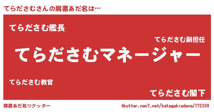| 意味不明あだ名 | 『自称てらださむ』『永久保存てらださむ』 |
