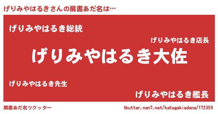 | 男性向けラノベタイトル風あだ名 | 『転生したらげりみやはるきだった件』 |