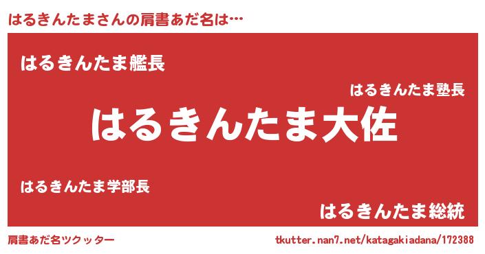 | 女子向けラノベタイトル風あだ名 | 『はるきんたまの玉の輿計画!』 |