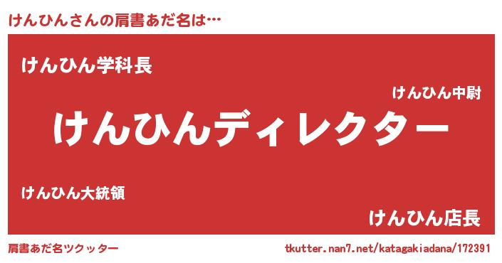 | ヘコむあだ名 | 『けんにゅー』『つくし』『けんっ子』 |