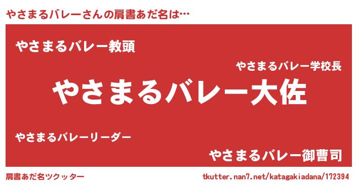 | 男性向けラノベタイトル風あだ名 | 『やさまるバレー~年齢イコール彼女いない歴の魔法使い~』 |