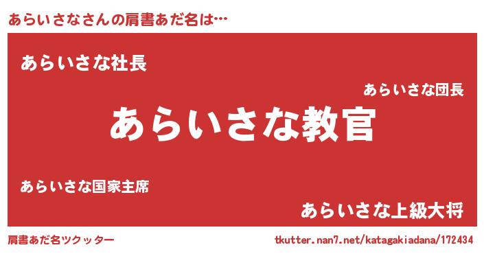 | 意味不明あだ名 | 『住所不定無職あらいさな(81歳)』 |