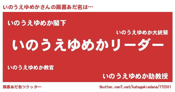 | 男性向けラノベタイトル風あだ名 | 『いのうえゆめかの嫁は女の子じゃないと思った?』 |