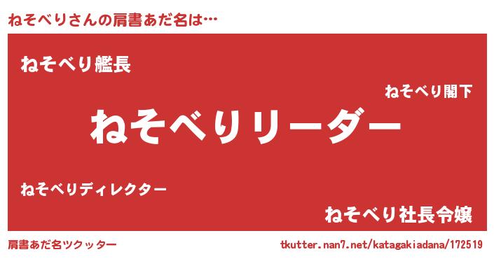 | 恥ずかしいあだ名 | 『ネソリンリン』『プリティーねそべり』 |