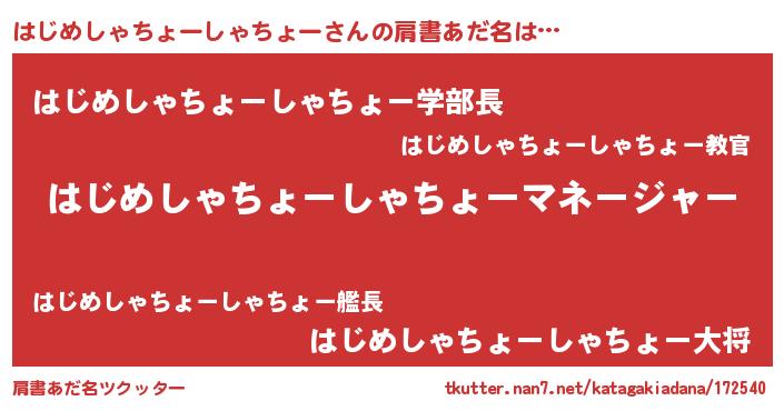 | ヒーロー風カッコイイあだ名 | 『天空の使者はじめしゃちょーしゃちょー』 |