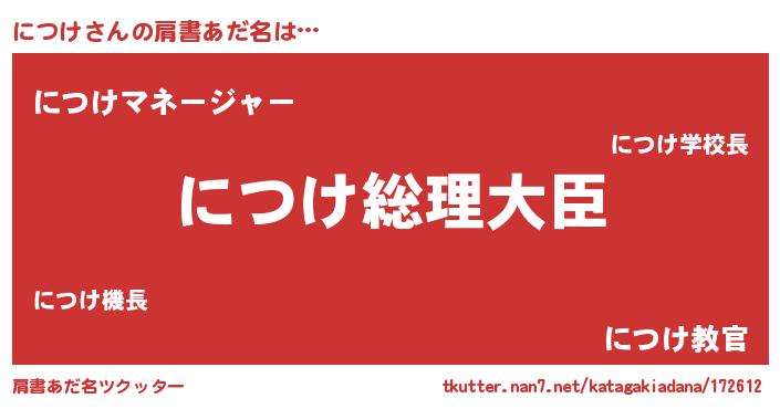| 意味不明あだ名 | 『につけフォーエバー』『自称につけ』 |