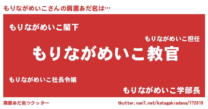 | 男性向けラノベタイトル風あだ名 | 『この素晴らしい世界にもりながめいこを!』 |