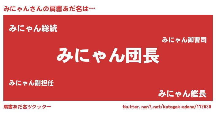 | 男性向けラノベタイトル風あだ名 | 『ダンジョンにみにゃんを求めるのは間違っているだろうか』 |