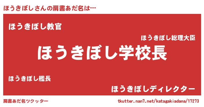 | ヒーロー風カッコイイあだ名 | 『慈愛の使者ほうきぼし』『仮面ホウダー』 |