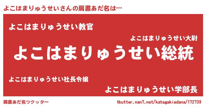 | 女子向けラノベタイトル風あだ名 | 『よこはまりゅうせいなんてお断りですっ。』 |