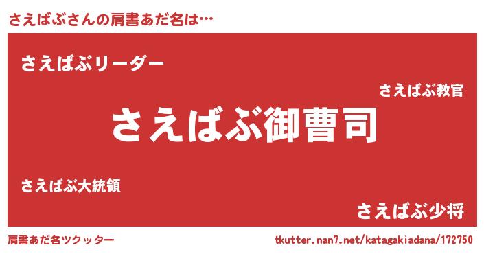 | ヒーロー風カッコイイあだ名 | 『スーパーサエバブ』『天弓騎士サエ』 |