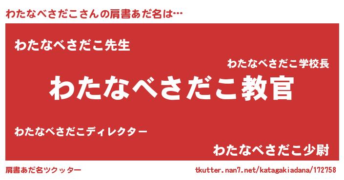| ヒーロー風カッコイイあだ名 | 『仮面ワタダー』『ネオワタナベサダコ』 |