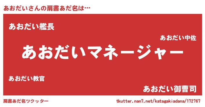| ヒーロー風カッコイイあだ名 | 『スーパーアオダイ』『仮面アオダー』 |