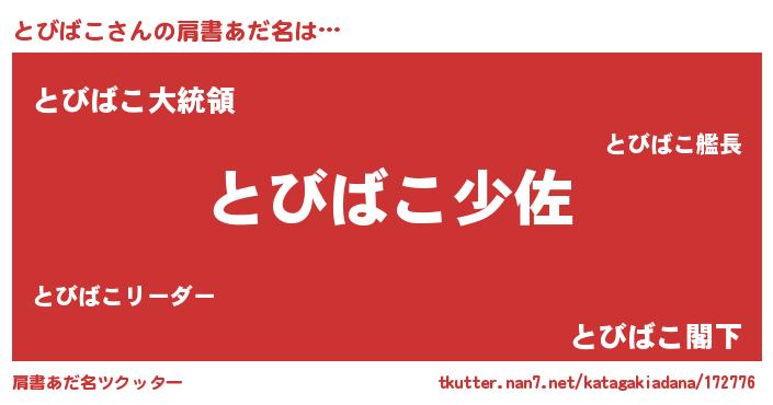 | 男性向けラノベタイトル風あだ名 | 『とびばこ~年齢イコール彼女いない歴の魔法使い~』 |