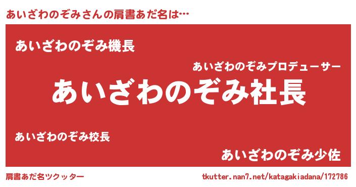 | 男性向けラノベタイトル風あだ名 | 『あいざわのぞみの憂鬱』 |