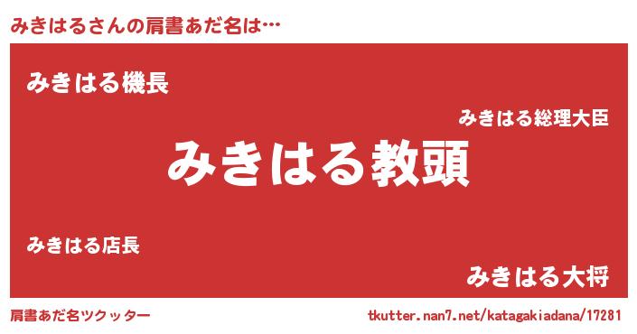 | 男性向けラノベタイトル風あだ名 | 『みきはるという概念が存在しない退屈な世界 』 |