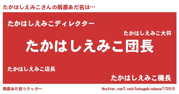 | 意味不明あだ名 | 『とにかく怪しいたかはしえみこ』 |