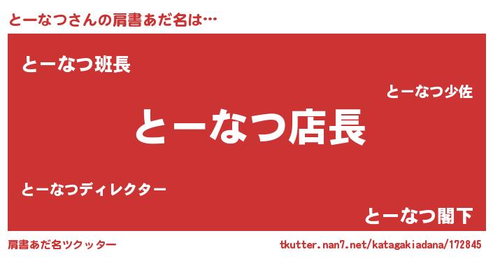 | ポケモン風あだ名 | 『トーチュウ』『ヒトーナツ』 |
